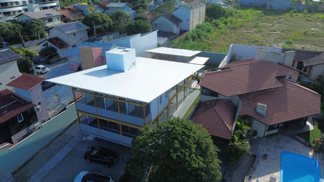 O pavilhão e a cobertura se projetam para a amplitude de se enquadrar a lagoa que fica logo à frente. O Estúdio Tuy se propõe a ser uma estrutura leve e flexível, e isso se reflete desde a escolha pelos materiais, na esbeltez da madeira laminada colada (MLC), até os amplos ambientes.